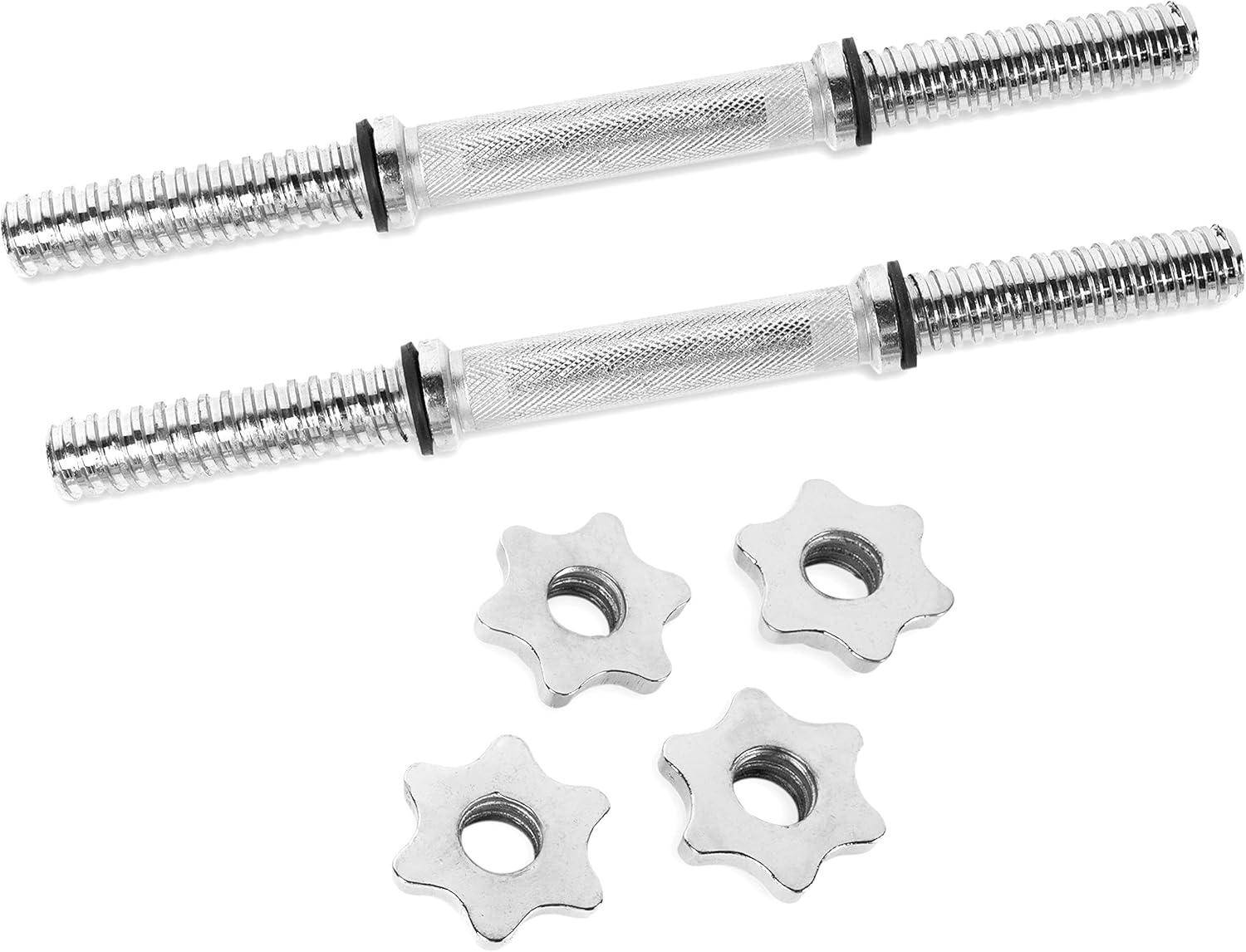 FEATURES – Accommodates standard 1-inch plates up to a recommended weight capacity of 100 lbs for each dumbbell. This allows for a variety of interchangeable weights to be used during weight lifting routines.