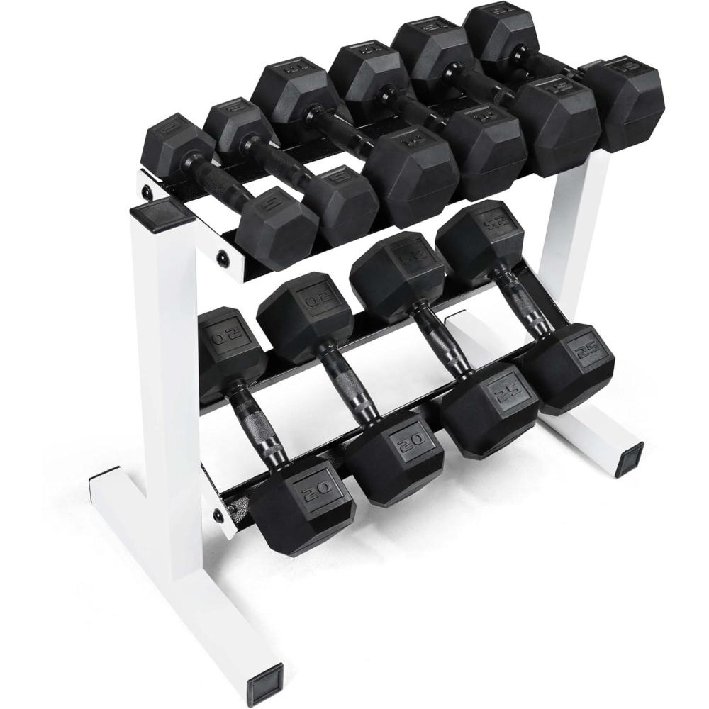 SPACE-SAVING DESIGN – The Two Tier design of this rack maximizes floor space. Easily access and store dumbbells. Rubber inserts prevent dumbbells and rack from scratches