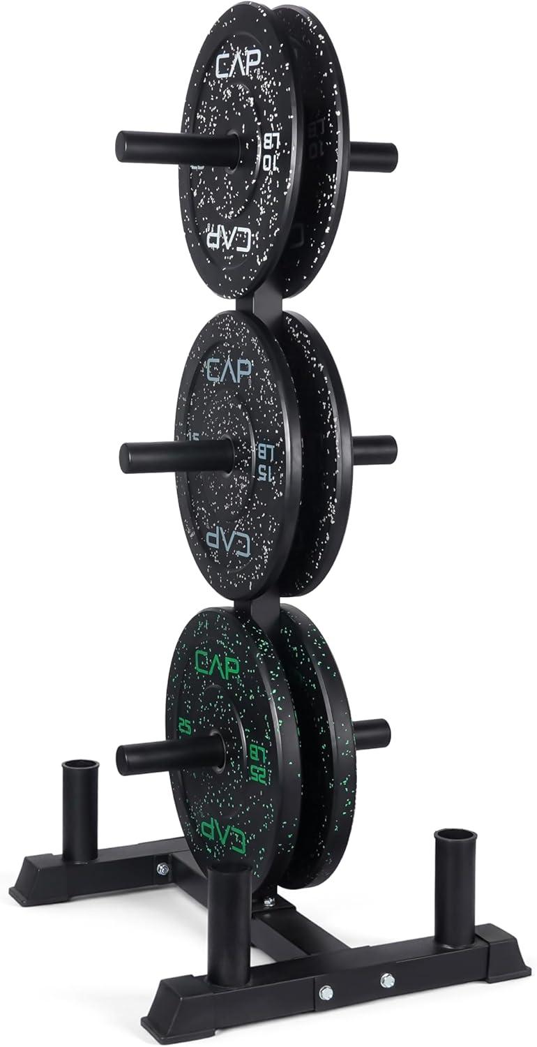 COMPLETE TRAINING BUNDLE – Get everything you need in one solution: Includes CAP Barbell Olympic Bumper Plate Tree Rack and a set of Competition Bumper Plates (10lb pair, 25lb pair and a 45lb pair ) Ships in multiple boxes, may arrive separately.