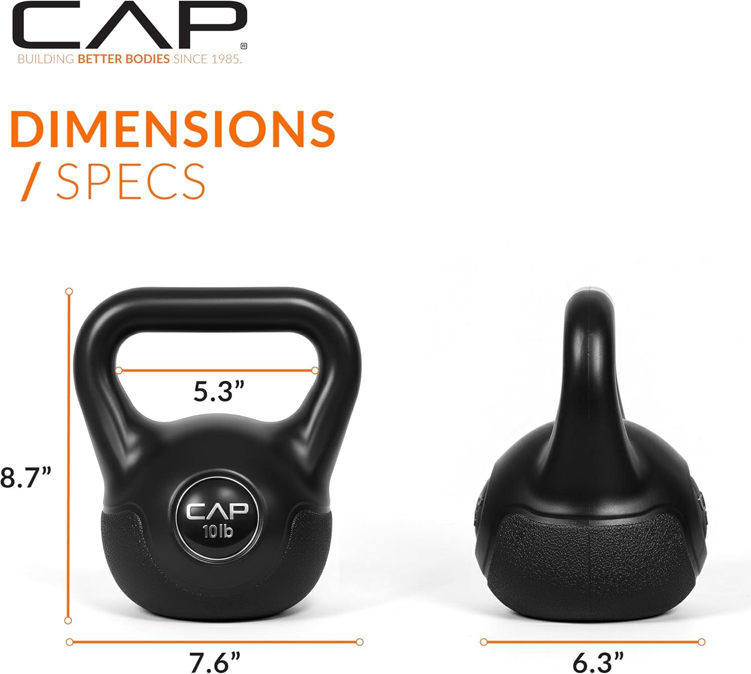 Elevate your training with the CAP Barbell 45 LB Cement Kettlebell Set, featuring 10 lb, 15 lb, and 20 lb kettlebells—perfect for full-body workouts, strength conditioning, cardio training, and functional fitness routines. Each kettlebell is built with a durable cement-filled core covered by a smooth protective outer shell that minimizes noise and reduces wear on your gym floors. The wide-handle design provides a secure, comfortable grip for swings, cleans, squats, snatches, carries, and presses, making this set suitable for beginners and seasoned lifters alike. With three versatile weight options, this kettlebell set supports progressive overload, HIIT workouts, metabolic conditioning, and strength development. Ideal for home gyms, garage gyms, and small workout spaces, these kettlebells deliver professional performance without requiring heavy cast iron equipment. Backed by more than 40 years of innovation, CAP Barbell delivers the dependable quality you expect from one of the most trusted names in strength training.”