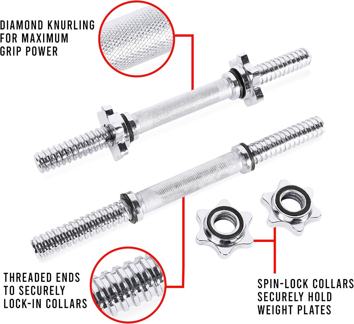 SET INCLUDES – A complete 52.5 lb adjustable dumbbell set featuring: one 17″ dumbbell handle, two 1.25 lb plates, two 2.5 lb plates, eight 5 lb plates, and two star-lock collars.