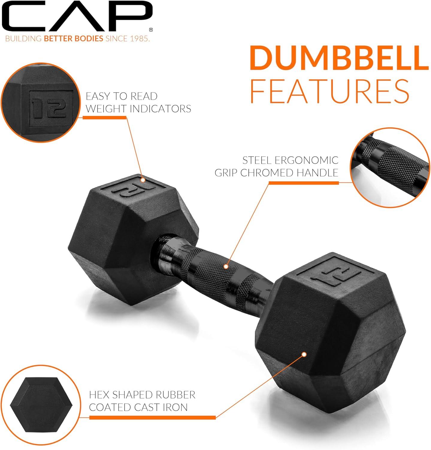 CAP Barbell Coated Dumbbell Weight | Multiple Options Pairs & Sets(Comfort Grip)