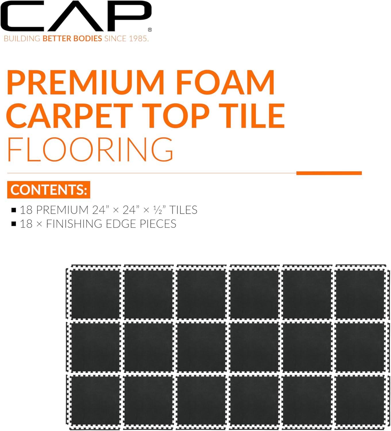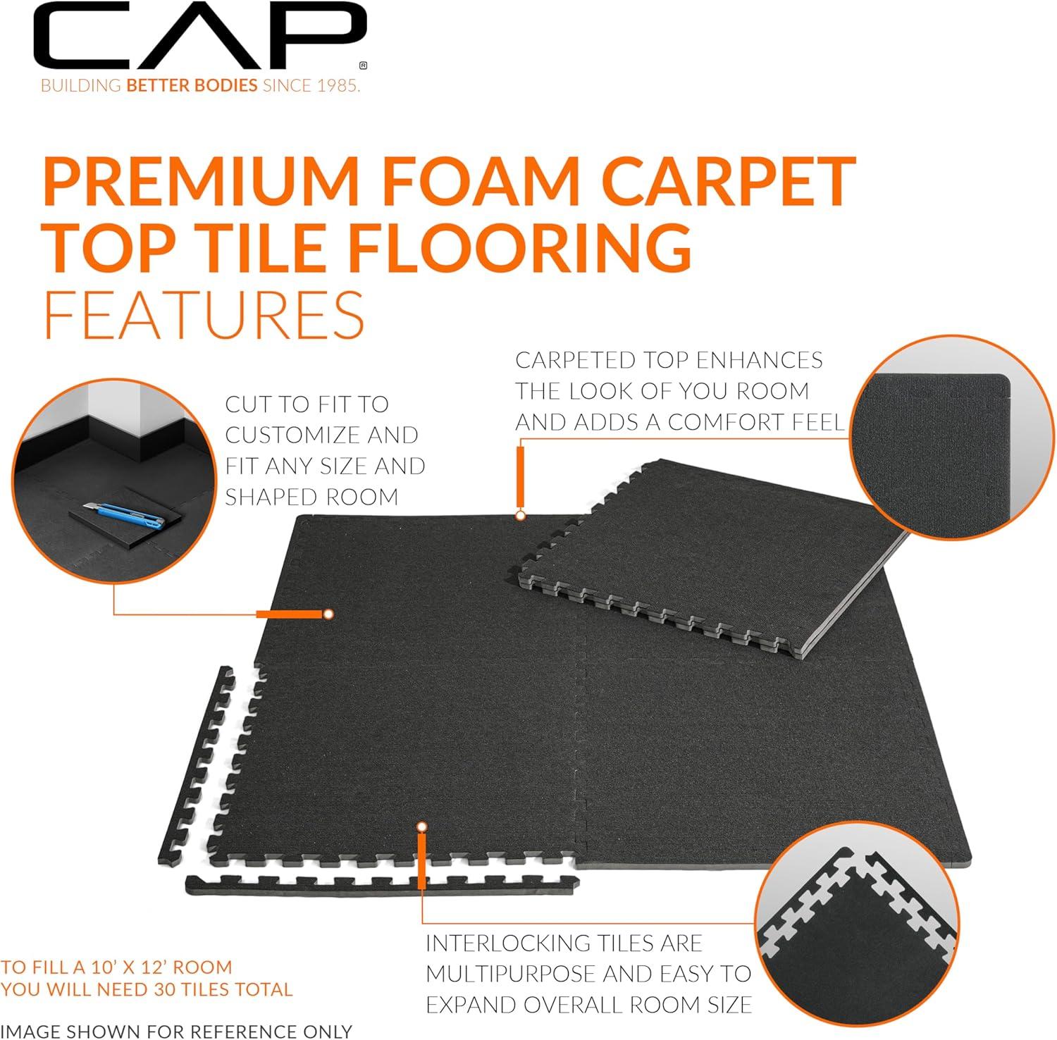 CAP Barbell Interlocking EVA Foam Carpet Puzzle Mat Floor Tiles - 24" x 24" x 1/2" | Multiple Color Options(Carpet Top - Black)