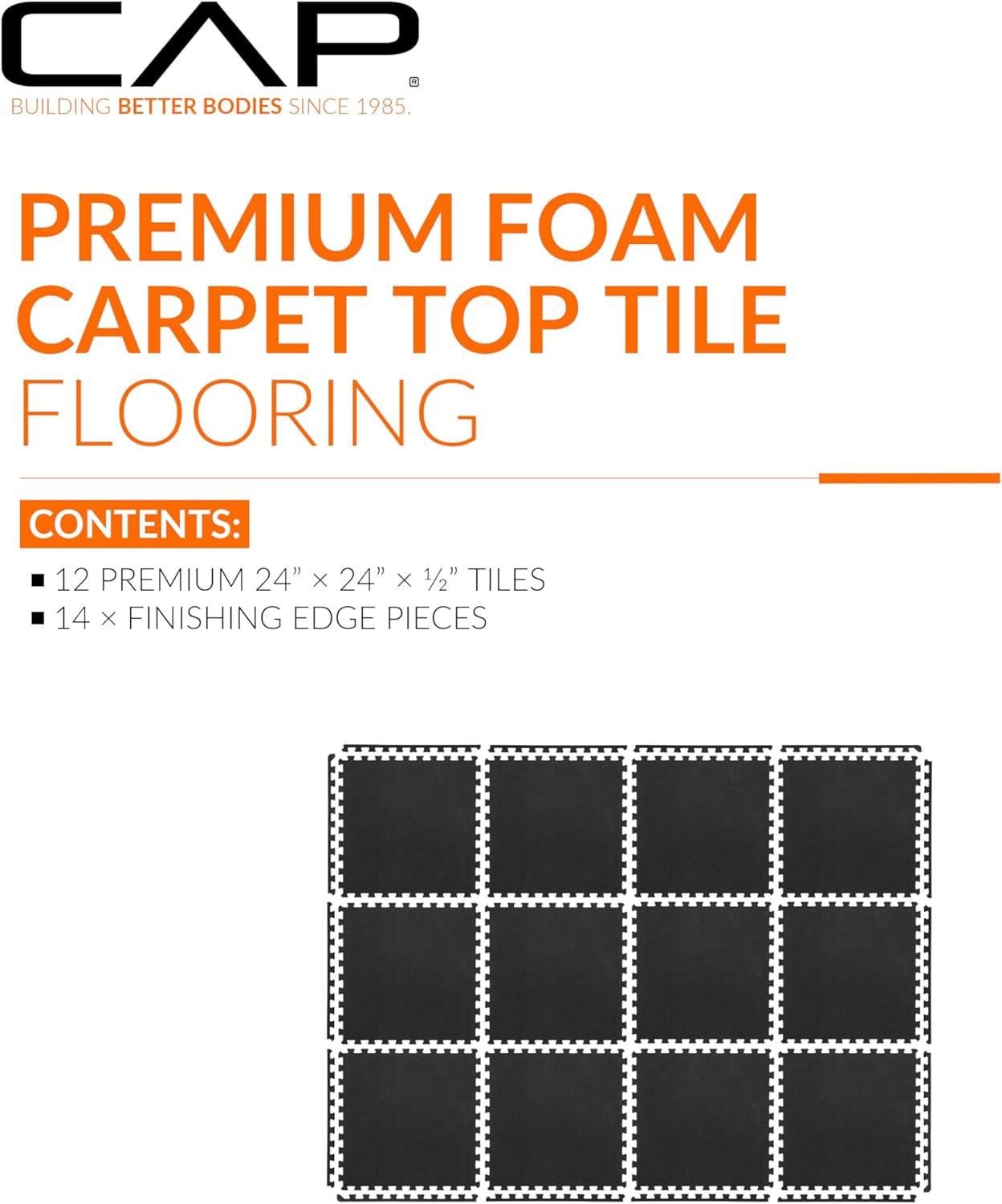 Get more for your money with our exclusive bundle deals on CAP Barbell Interlocking EVA Foam Carpet Puzzle Mat Floor Tiles – 24" x 24" x 1/2" | Multiple Color Options(Carpet Top – Black) and accessories.