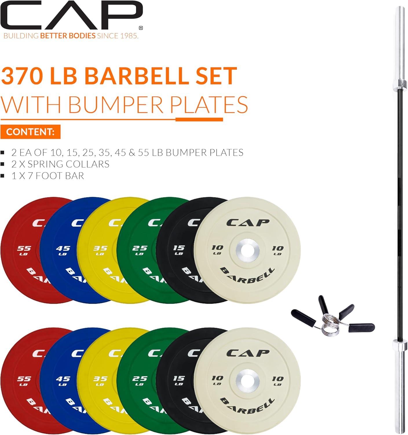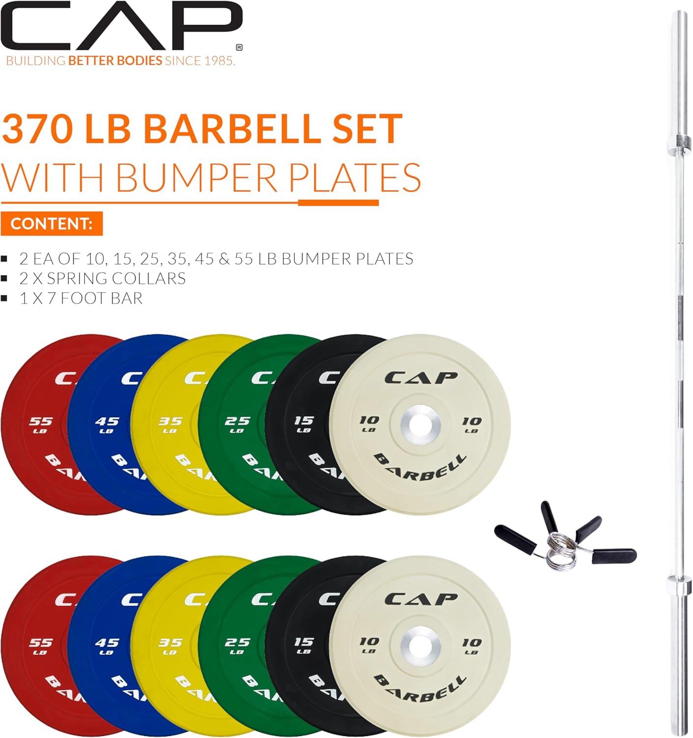 CAP Barbell Olympic Weight Set with 7ft Barbell & Bumper Plates | 160-370 lbs | Multiple Options(Competition)