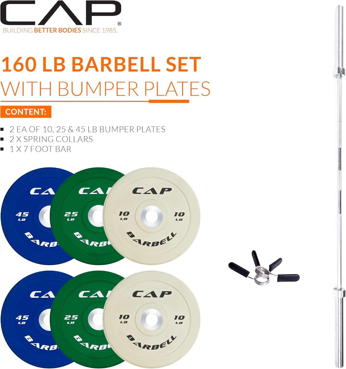 CAP Barbell Olympic Weight Set with 7ft Barbell & Bumper Plates | 160-370 lbs | Multiple Options(Economy)