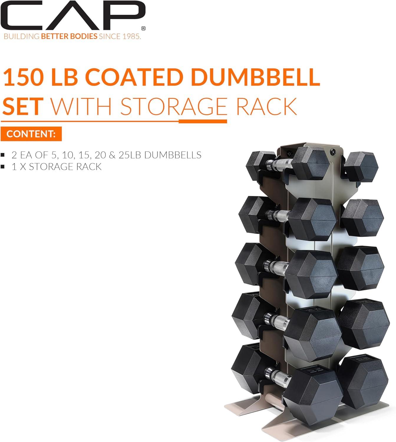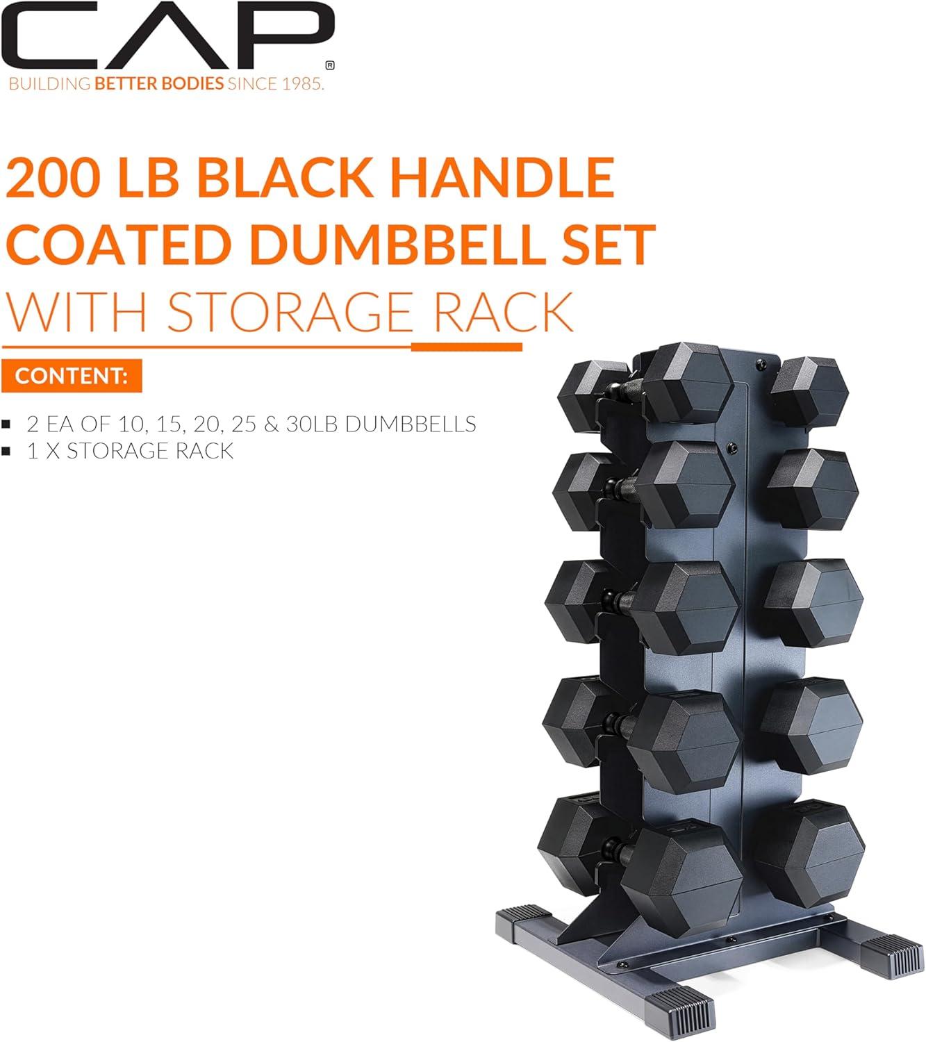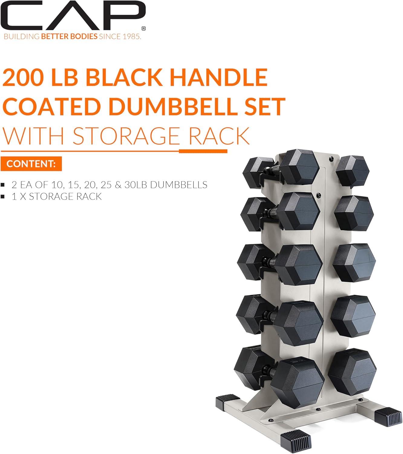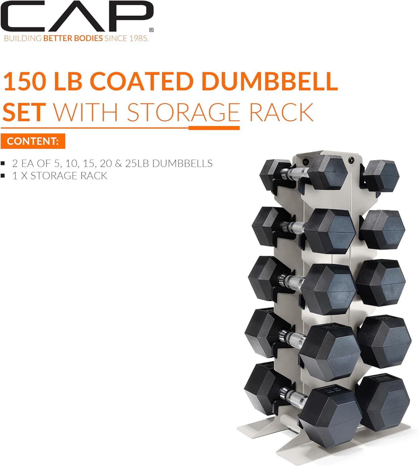 CAP Barbell Rubber Coated Hex Dumbbell Set with Vertical Rack | 100-300 lbs Free Weights Dumbbells Set for Home Gym | Multiple Options(Comfort Handle)