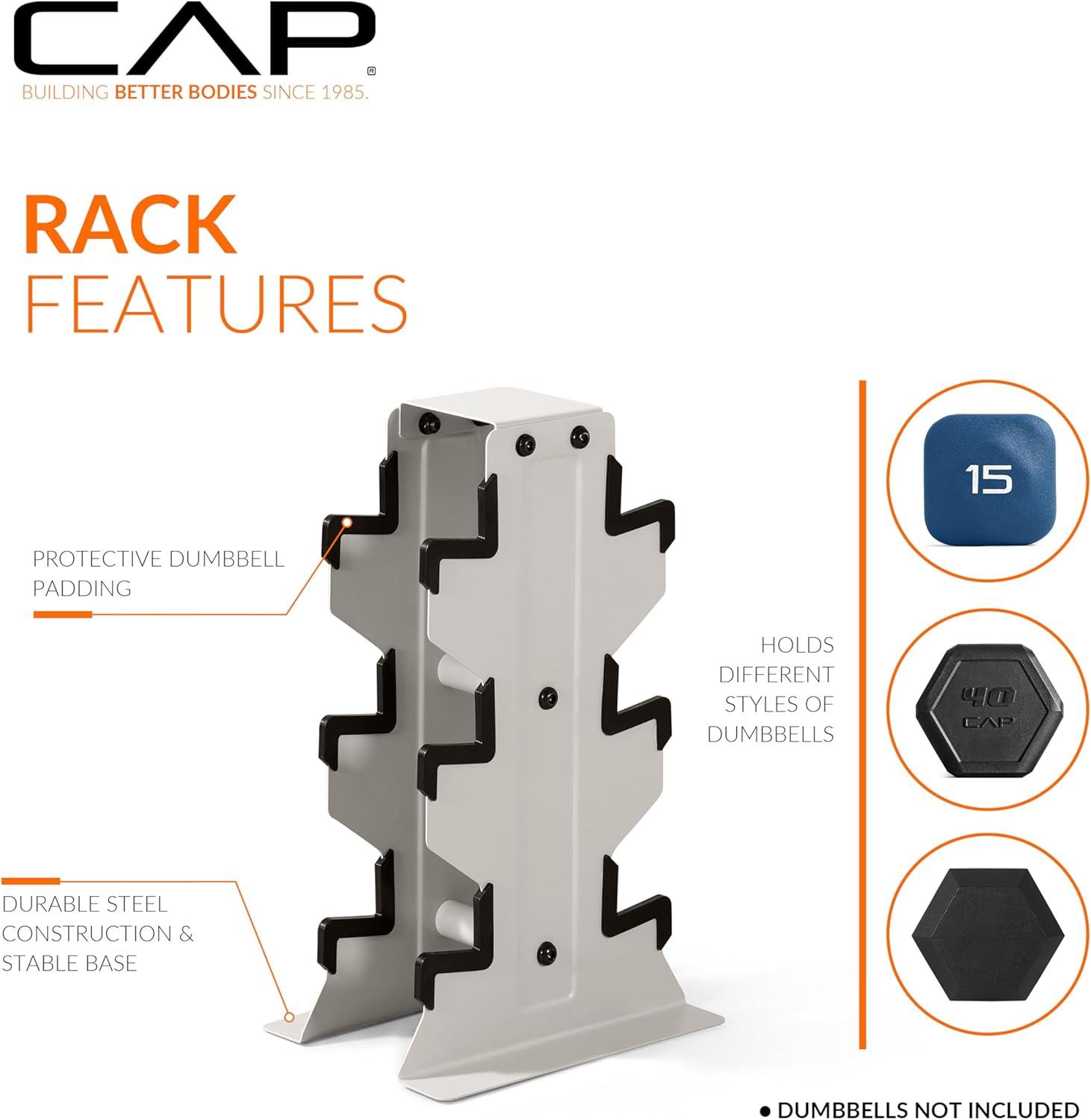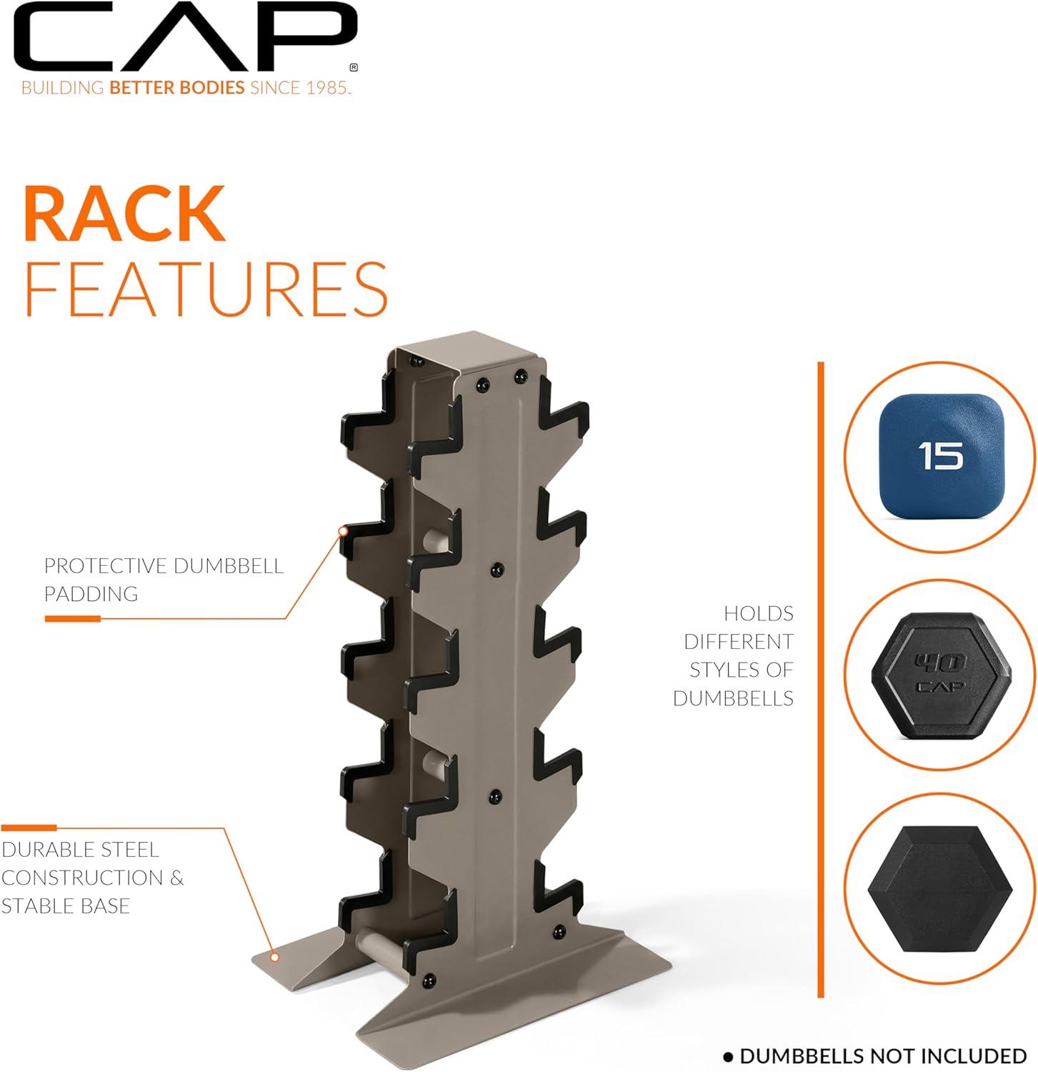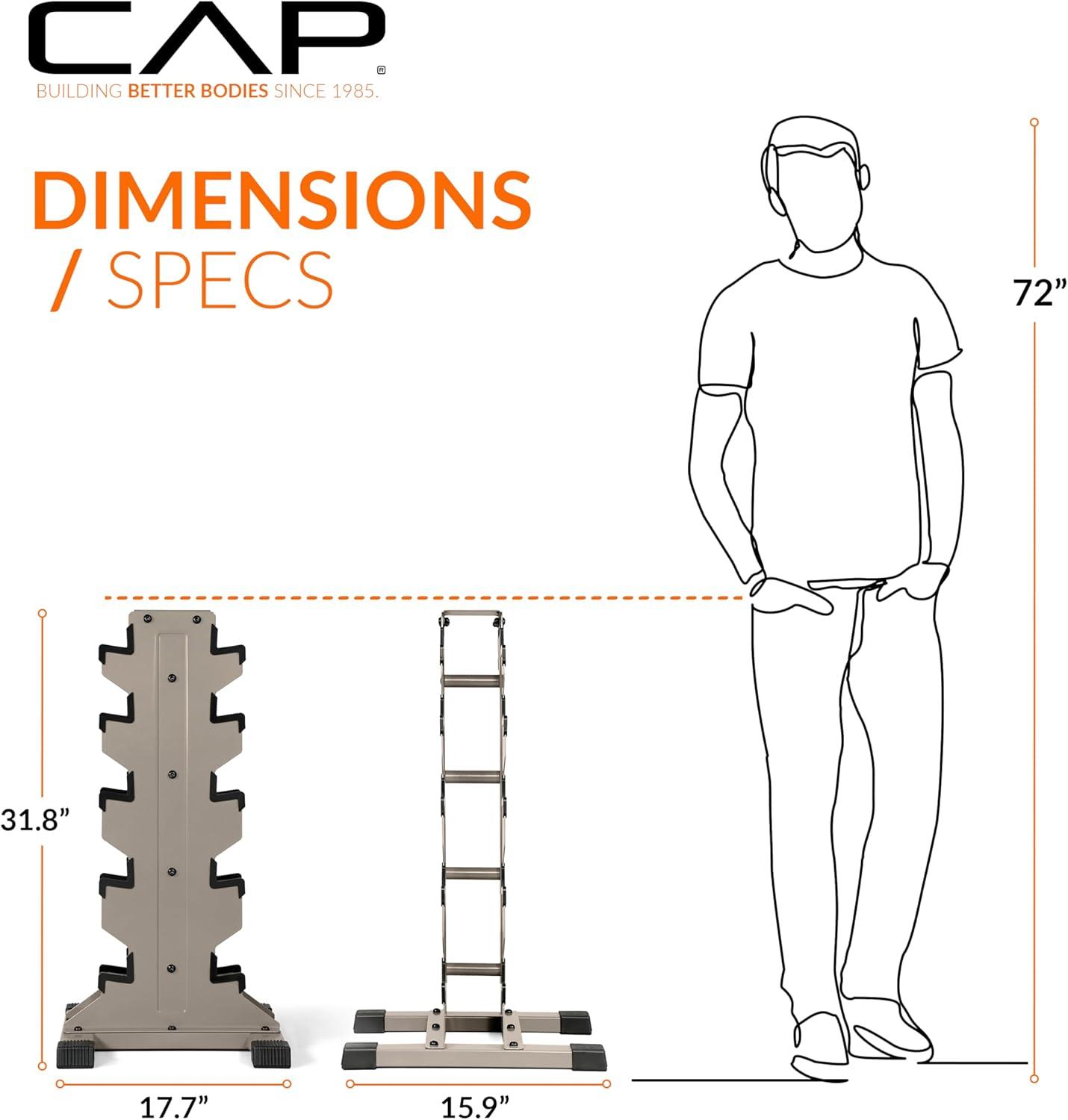 imageCAP Barbell Rubber Coated Hex Dumbbell Set with Vertical Rack  100300 lbs Free Weights Dumbbells Set for Home Gym  Multiple OptionsComfort Handle