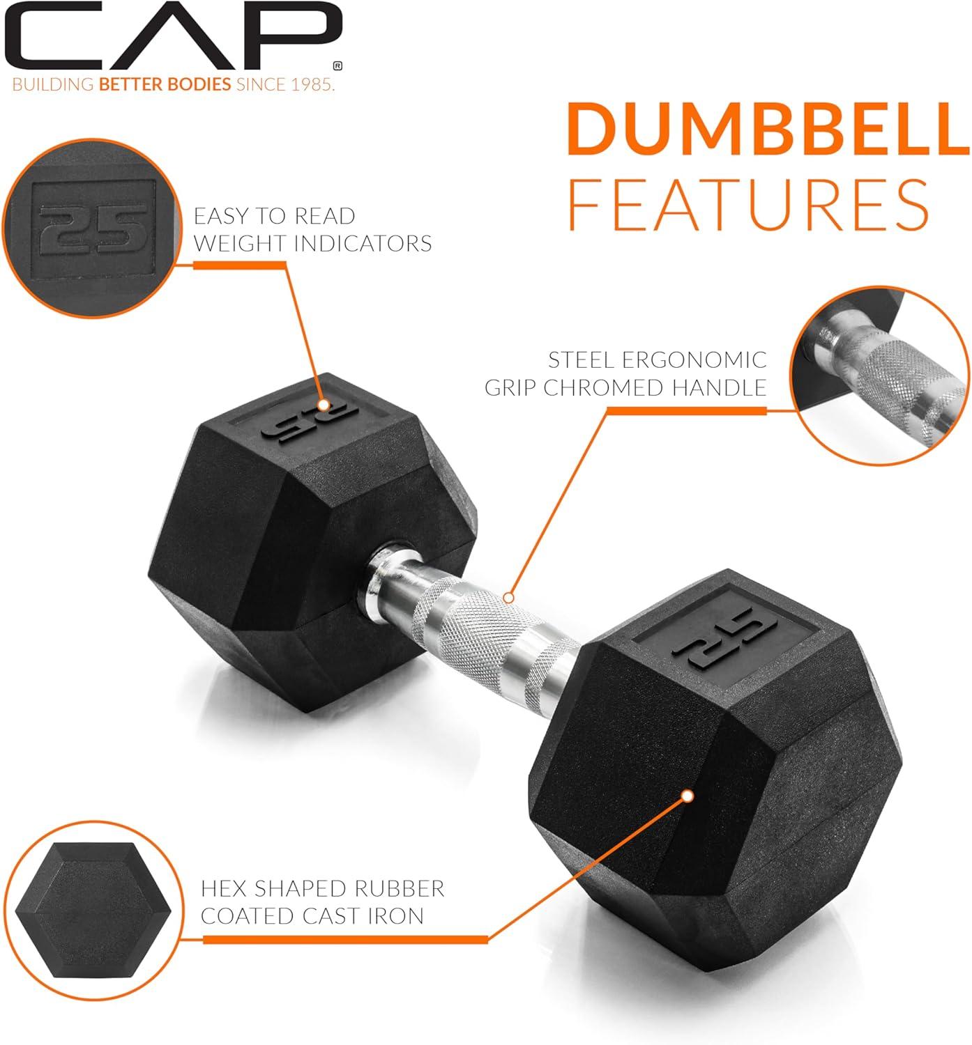 imageCAP Barbell Rubber Coated Hex Dumbbell Set with Vertical Rack  100300 lbs Free Weights Dumbbells Set for Home Gym  Multiple OptionsChrome Handle