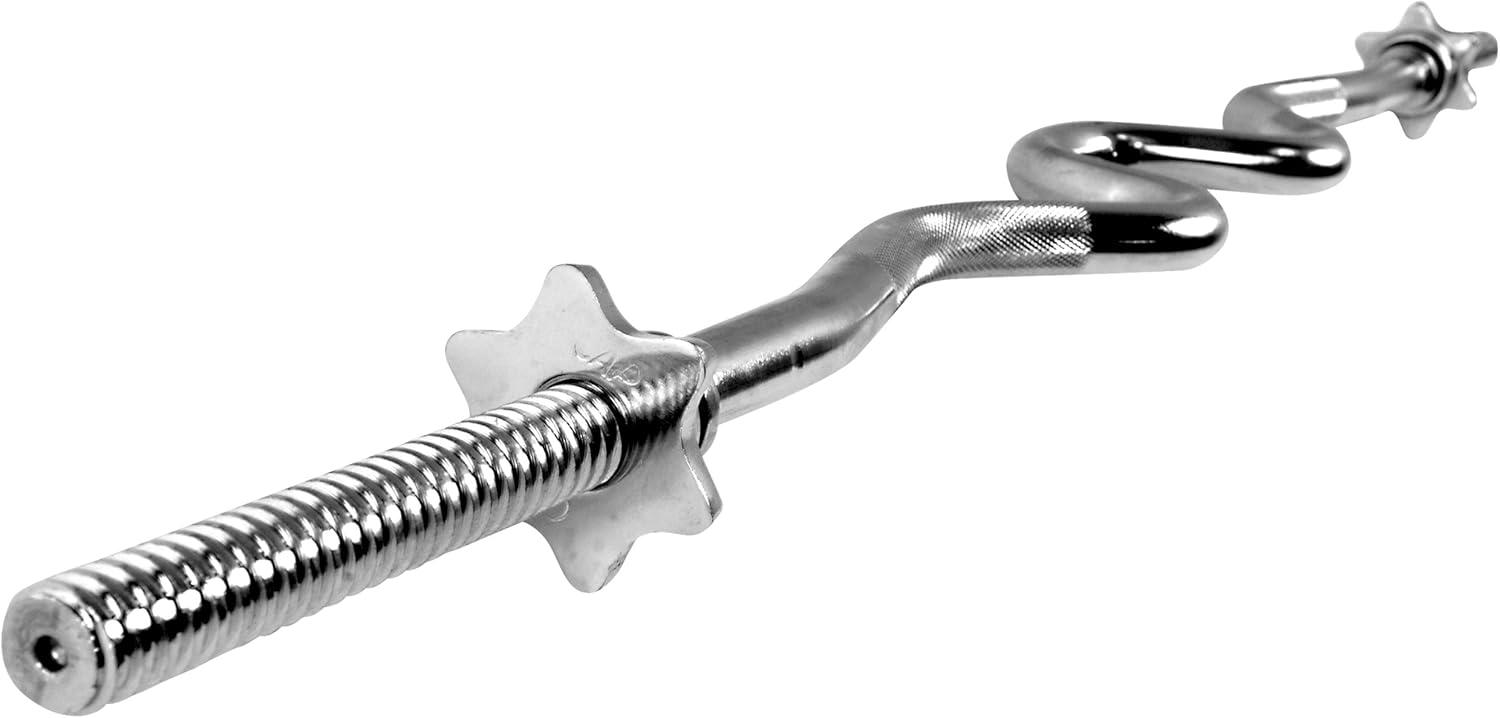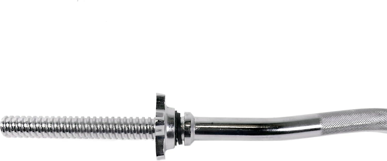 The CAP Barbell Standard Threaded Curl Bar combines the functions of a standard triceps bar and a standard curl bar. This innovative design provides two separate grip positions to intensify the isolation and increase upper arm size in both the bicep and triceps muscles. Featuring medium-depth diamond knurling for a secure grip and threaded ends with collars to secure fashion weights onto the barbell, this curl bar offers the safety and durability needed when exercising. Crafted from solid steel with a protective chrome finish for long-lasting performance. 30-day manufacturer’s . Designed to accommodate weight plates with a 1-inch center hole.